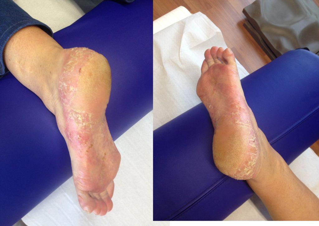 eczema, bilateral (the male on the hands and the lady on the feet). Both